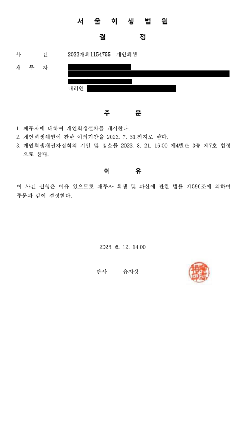 ☑️ 개인회생 결과