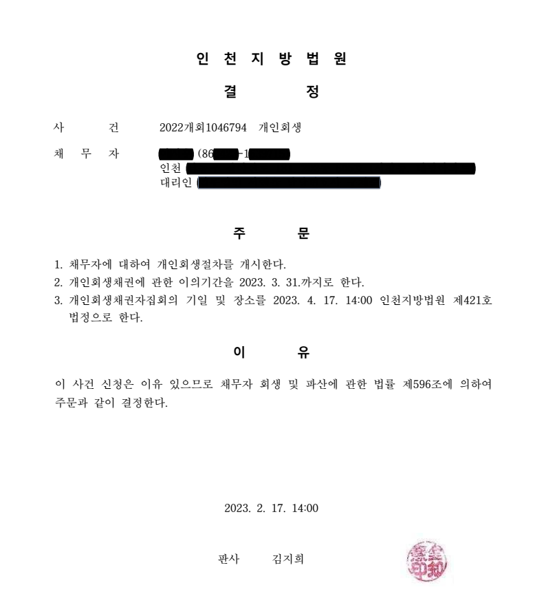 인천지방법원2022개회1046794, 사업실패 및 돌려막기