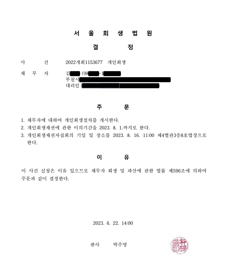 개인회생 서울회생법원2022개회1153677, 사업실패 2024-12-04 성별/연령 : 남/20대 가족관계/부양가족 : 미혼/1인가구 총 채무액 : 99,823,412원소득 : 1,734,540원 월 변제금 : 567,653원변제기간 : 48개월탕감금액 : 73,120,484원탕감율 : 74%채무증대사유 : 사업 실패 비고 : 이전 사업장 보증금 및 대출금 사용내역 중 소명할 수 없는 금액 및 불성실한 사용 금액 재산가치에 산입되어 변제기간 상향됨. 목록
